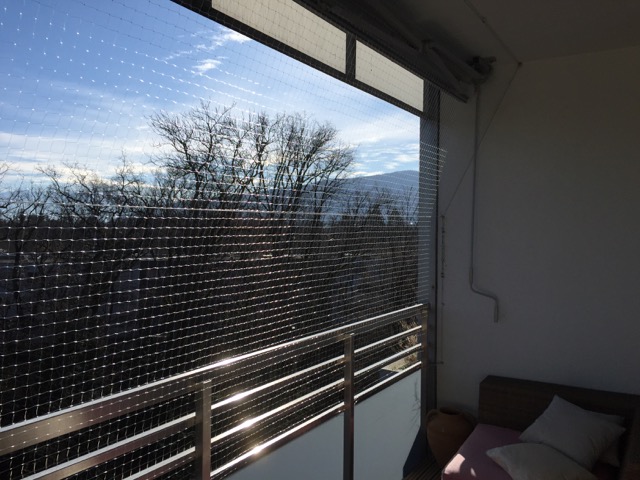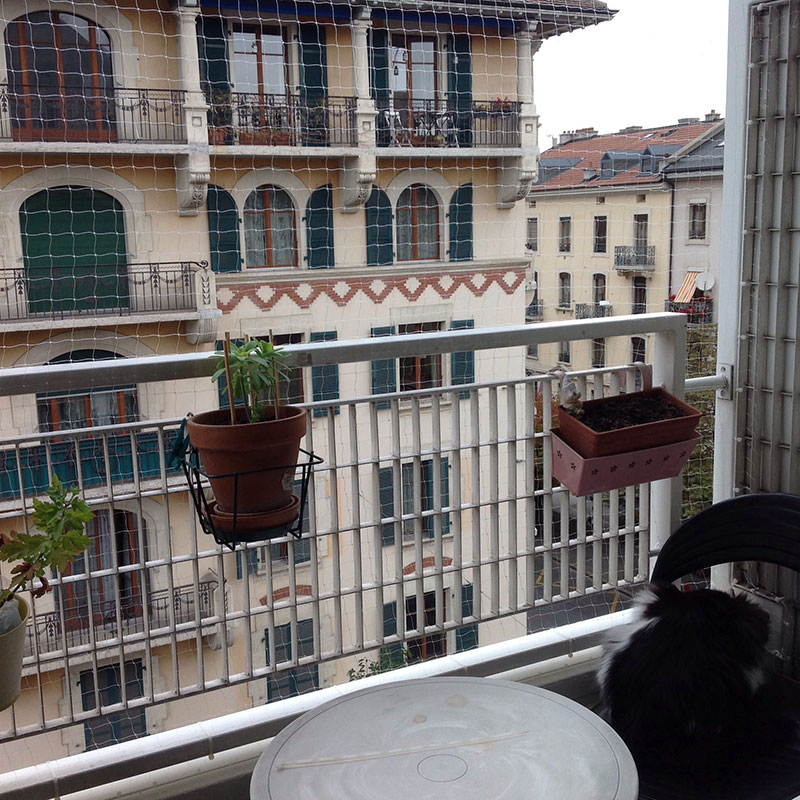 Le filet transparent sera tôt ou tard grignoté par votre chat; de plus, il aura tendance à « cuire » après quelques saisons d’exposition au soleil puis au froid.